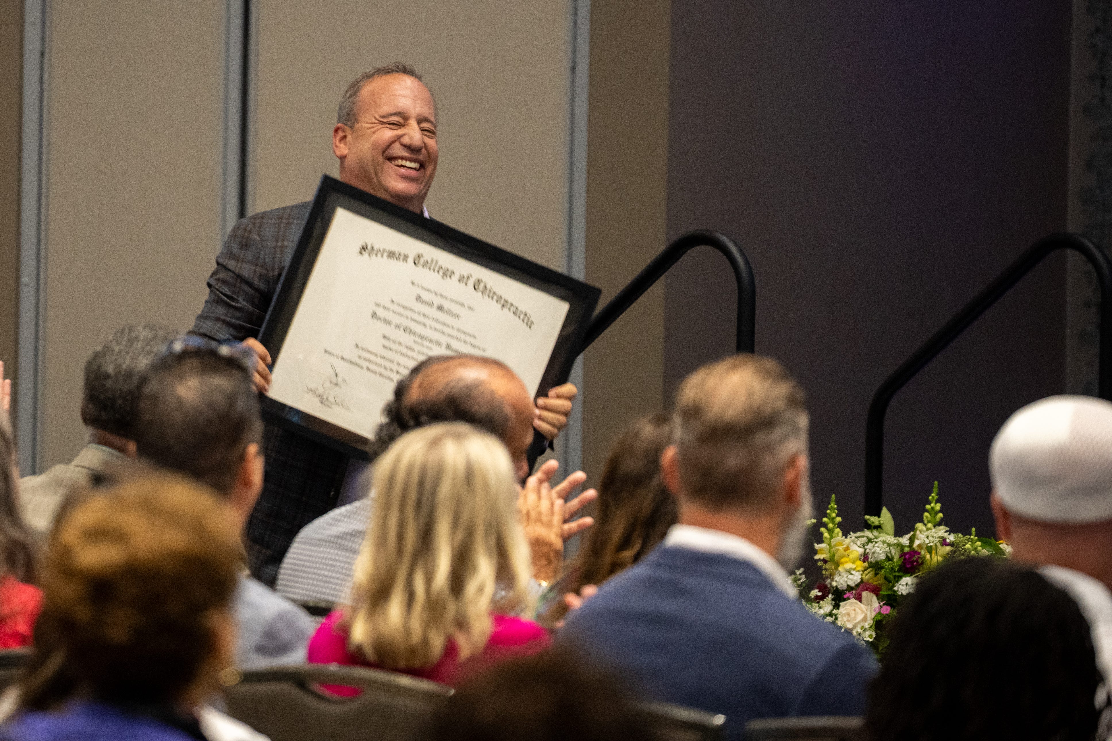 “David’s mission to empower over a billion people to live abundant, purpose-filled lives resonates deeply with chiropractic philosophy,” said Sherman President Dr. Jack Bourla as he presented the diploma. “At Sherman, we talk about connecting man the physical to man the spiritual—David has dedicated his life to that kind of alignment.”