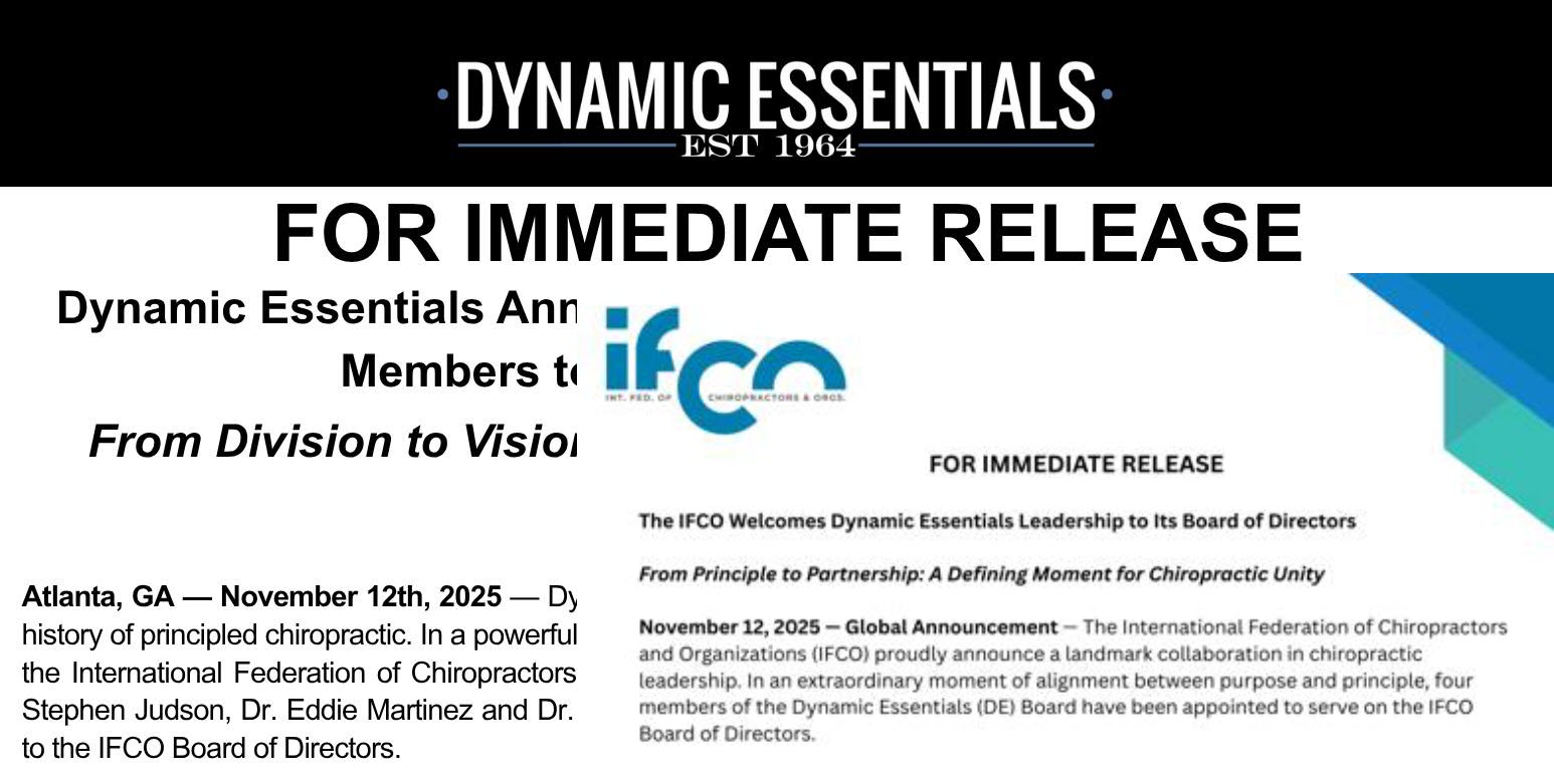In one of the most consequential developments in modern chiropractic history, four former leaders of the International Chiropractors Association (ICA), Drs. Stephen Judson, Brian Lieberman, Eddie Martinez, and Drew Henderson, have joined the Board of Directors of the International Federation of Chiropractors and Organizations (IFCO). Their arrival, alongside the energy and influence of Dynamic Essentials, signals a seismic realignment, principled chiropractic is finding its new home.