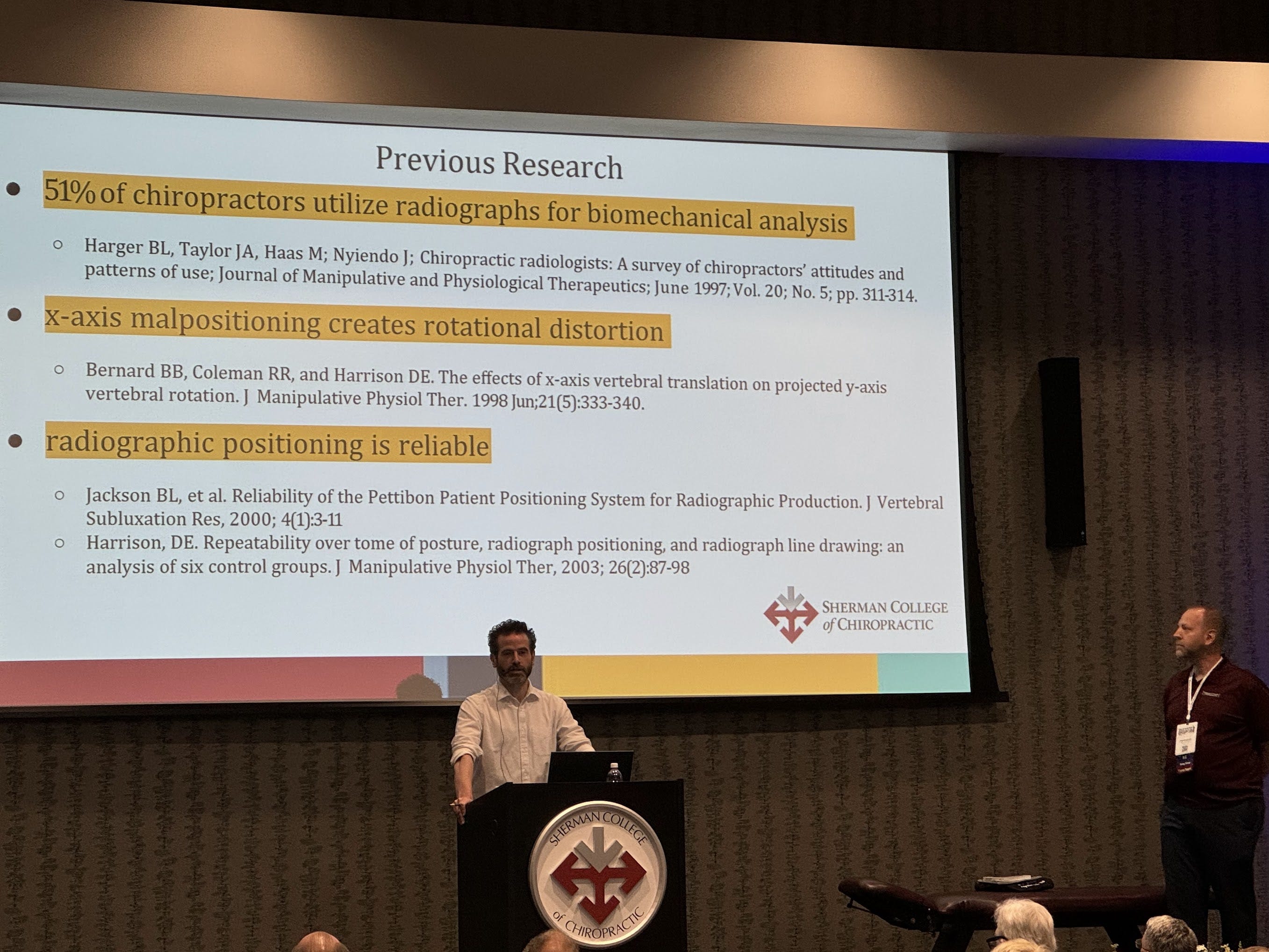 This presentation tackled the reliability of visual analysis at the cervicothoracic junction by comparing AP Open Mouth (APOM) and thoracic sectional radiographs. As faculty at Sherman College, Drs. Devlin and Becker brought not only technical precision but a pedagogical perspective to the challenge of improving diagnostic consistency. Their study emphasized the need for continued refinement in radiographic interpretation techniques within chiropractic.