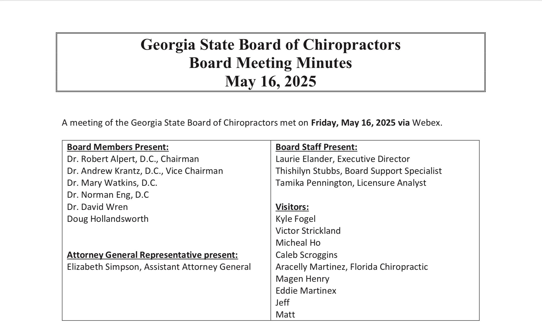 At its May 16, 2025 meeting, the Georgia Board of Chiropractic Examiners voted to revise its administrative rule governing acceptable chiropractic schools. The change added five simple words — “or an equivalent as determined by the Board” — to Rule 100-12-.01.