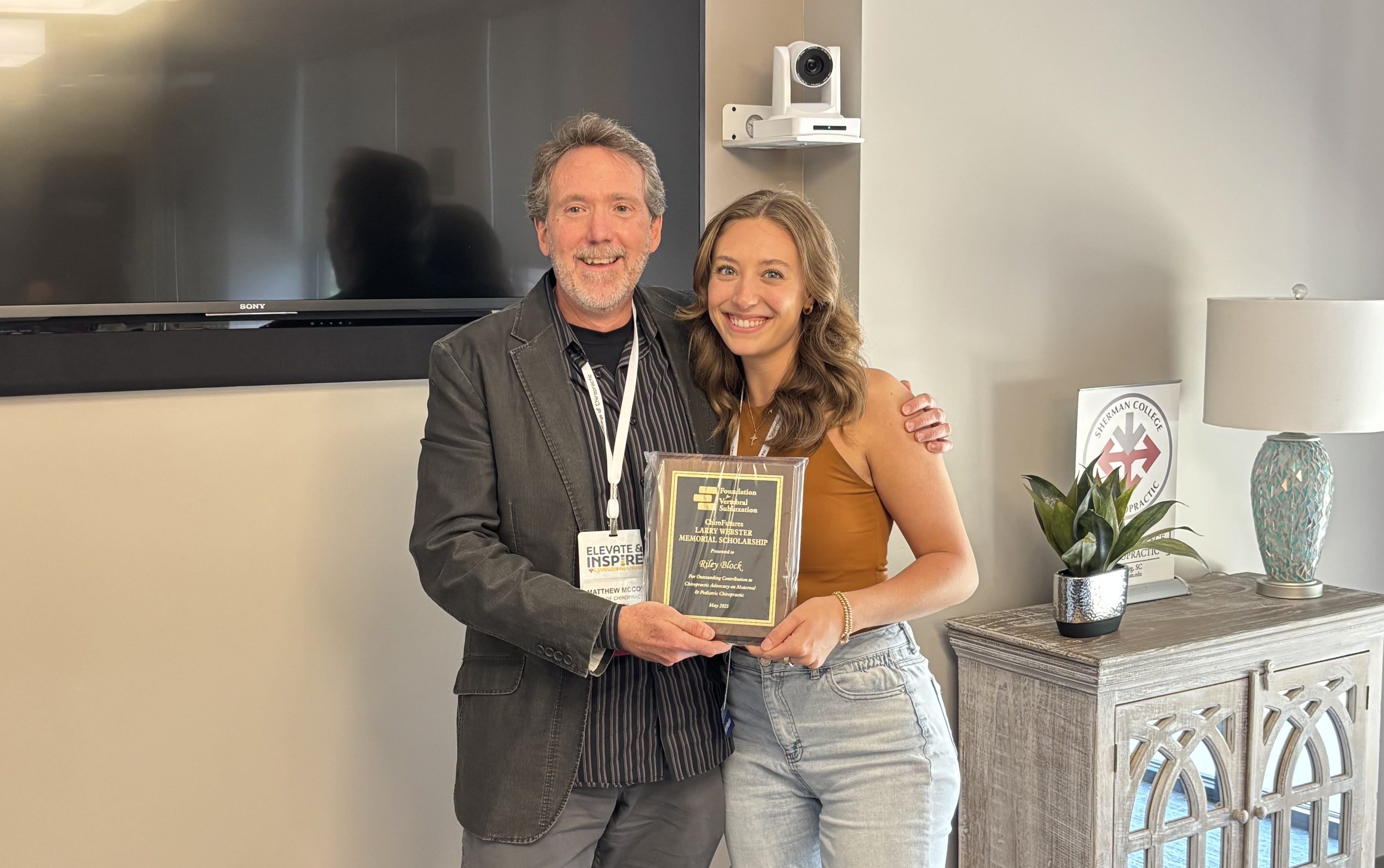 The Larry Webster Memorial Scholarship Award, presented by ChiroFutures, was awarded to Riley Block for her exceptional advocacy in maternal and pediatric chiropractic care. This scholarship honors the legacy of Dr. Larry Webster, whose contributions to chiropractic pediatrics and the development of the Webster Technique remain foundational.