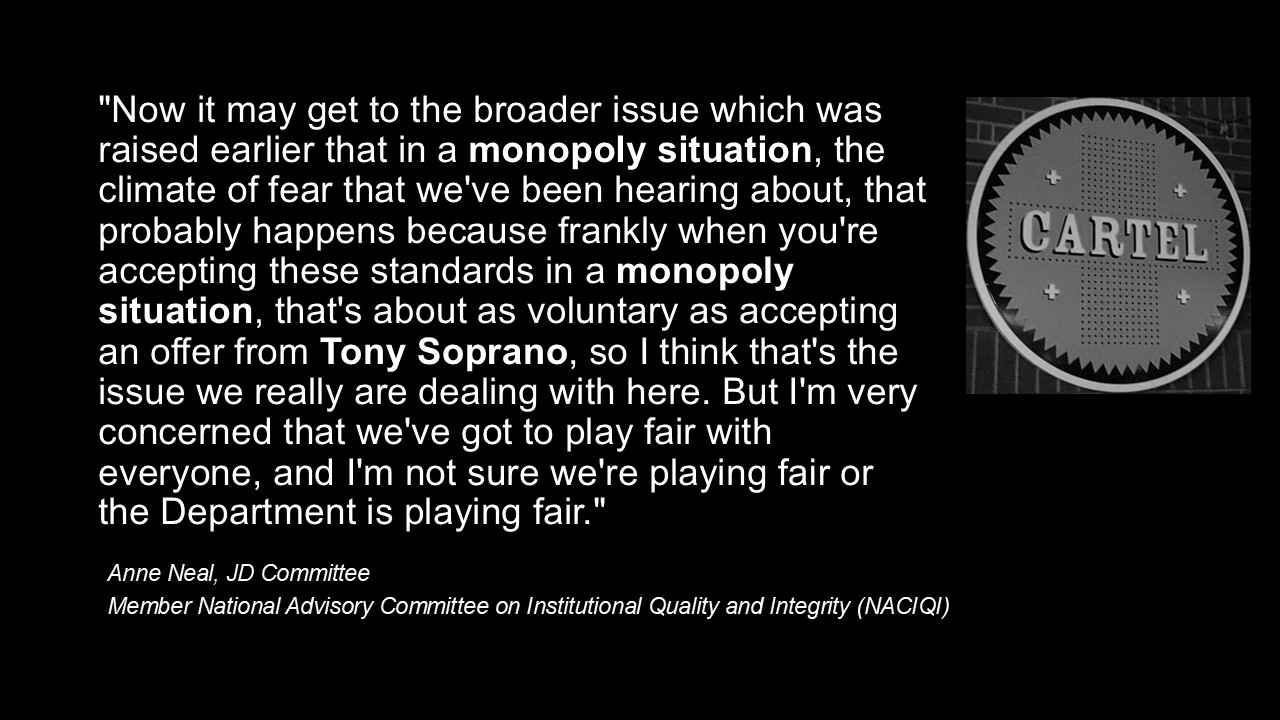 Then remarkably, despite submitting written comments and presenting oral testimony the CCE decided to completely leave out any mention of what representatives of the Coalition stated during the meeting - instead simply reporting: During the meeting the Council received oral comments from Dr. Michael Guinosso and Dr. Scott Kelly.