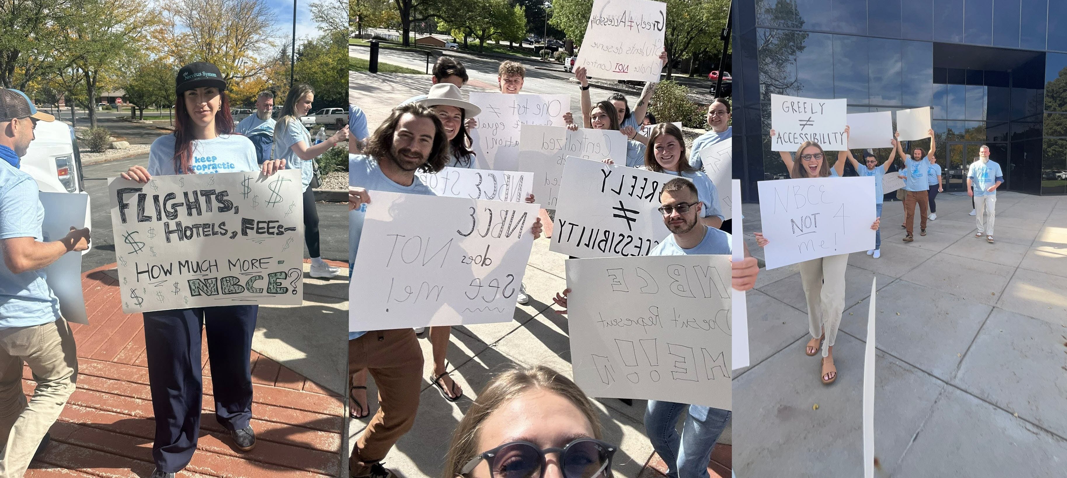 Chiropractic students representing several chiropractic schools and programs made a trip to Greeley, Colorado to stand outside the National Board of Chiropractic Examiners (NBCE) headquarters and ask a simple question: Why are you doing this?