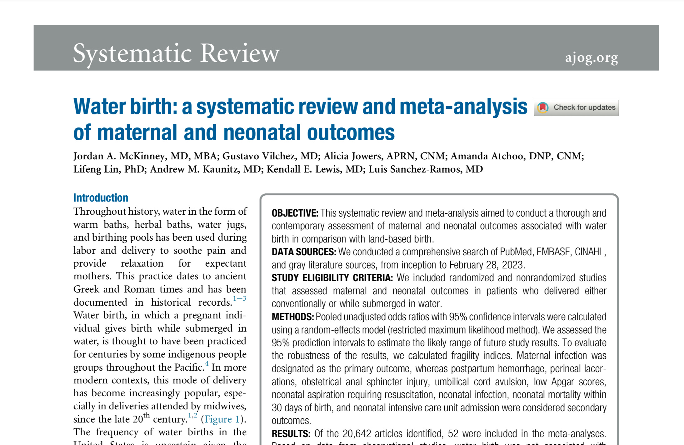 McKinney JA, Jolles D, Vedam S, et al. Water birth, a prospective observational study of maternal and neonatal outcomes in the United States. https://pubmed.ncbi.nlm.nih.gov/38462266/