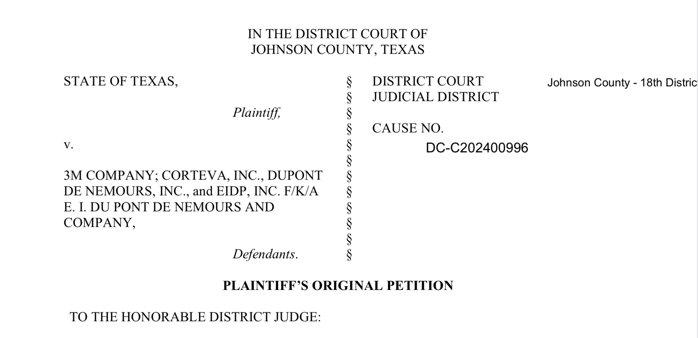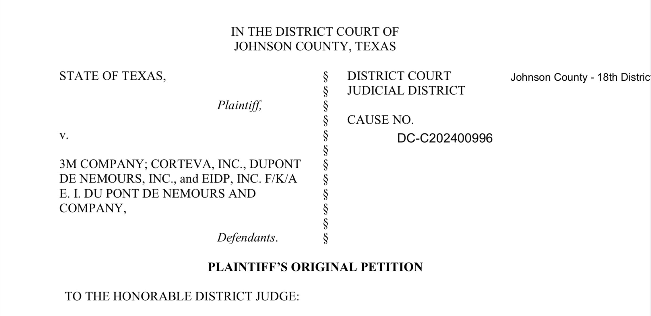 On September 25, 2025, a Texas federal judge ruled to remand the state’s lawsuit against 3M Co. and Corteva Inc., denying the companies’ bid to keep the case in federal jurisdiction. This move sends the proceedings back to Johnson County District Court, where it was originally filed by Texas Attorney General Ken Paxton in December 2024. The decision aligns with similar outcomes in other PFAS-related cases, limiting companies’ ability to consolidate lawsuits in federal multidistrict litigation (MDL).
