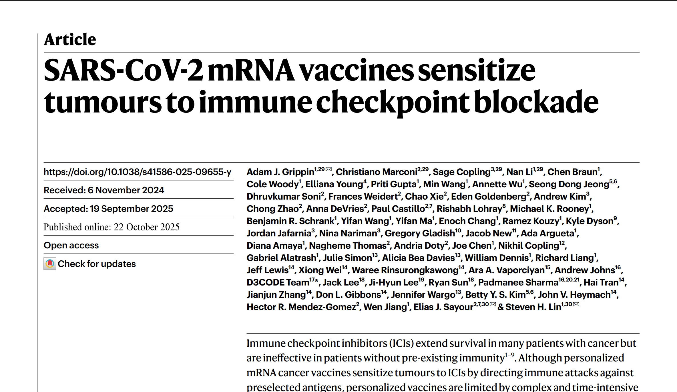 At the heart of the buzz is a retrospective observational study published in Nature on October 22, 2025, involving researchers from the University of Florida and MD Anderson Cancer Center. Analyzing records from over 1,000 patients with advanced non-small cell lung cancer (NSCLC) or metastatic melanoma who were on immune checkpoint inhibitor (ICI) immunotherapy, the study found an association: those who received an mRNA COVID vaccine (like Pfizer or Moderna) within 100 days of starting treatment had roughly doubled median survival rates compared to unvaccinated peers.