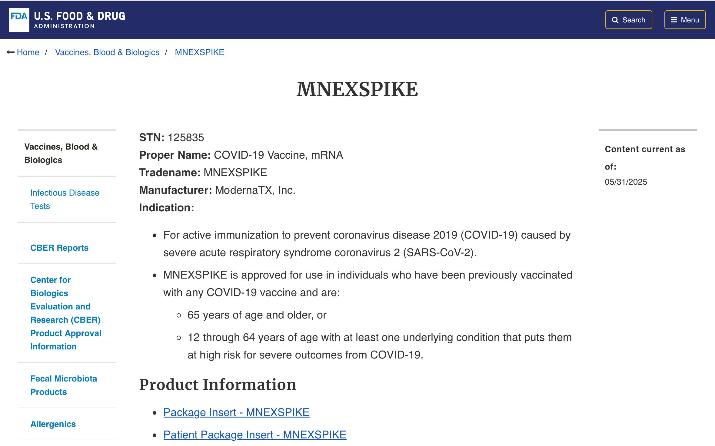 On May 31, 2025, the FDA granted Moderna’s new mRNA-1283 vaccine approval, but with restrictions. mNEXSPIKE is authorized only for: