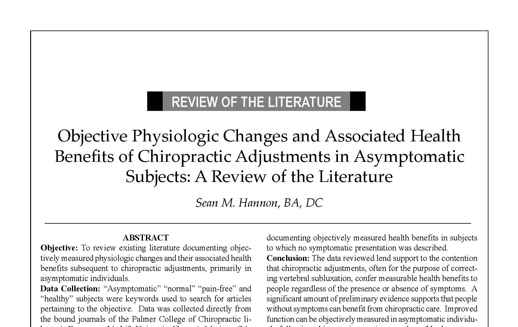 Long before “wellness care” became a buzzword, the Hannon review published in the Journal of Vertebral Subluxation Research challenged that entrenched assumption head on. It assembled more than twenty studies documenting objectively measured changes in physiology, structure and function in people specifically described as healthy, normal or asymptomatic.